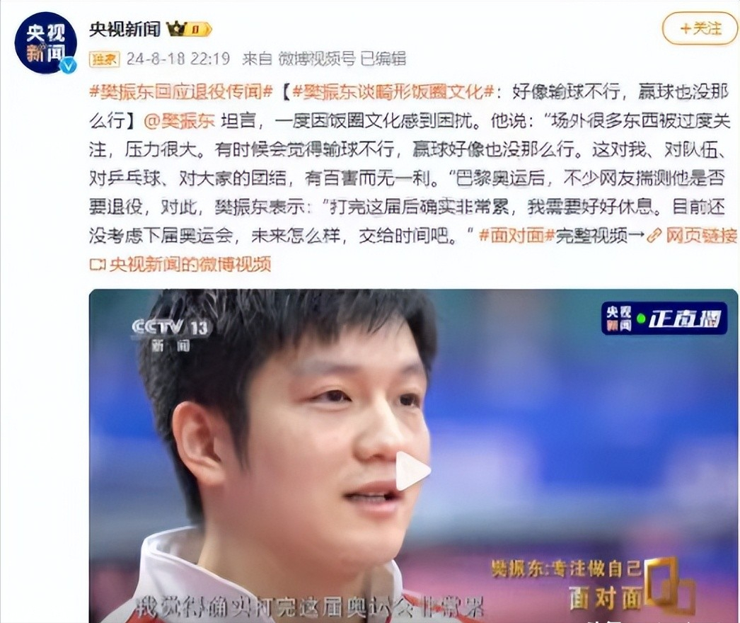 樊振东就曾对此事多次发文,强烈抵制饭圈文化和体坛产生联系。